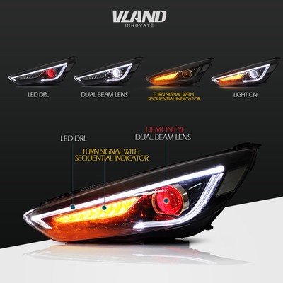 Vland For Ford Focus Led Projector Headlights 2015 2016 2017 Yaa Fks 0289