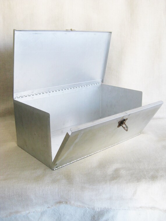 Vintage Folding Aluminum Storage Box Organization Silver Tone Office Studio Metal Hinged Industrial Chic Rustic Cabin Decor Mild Glam