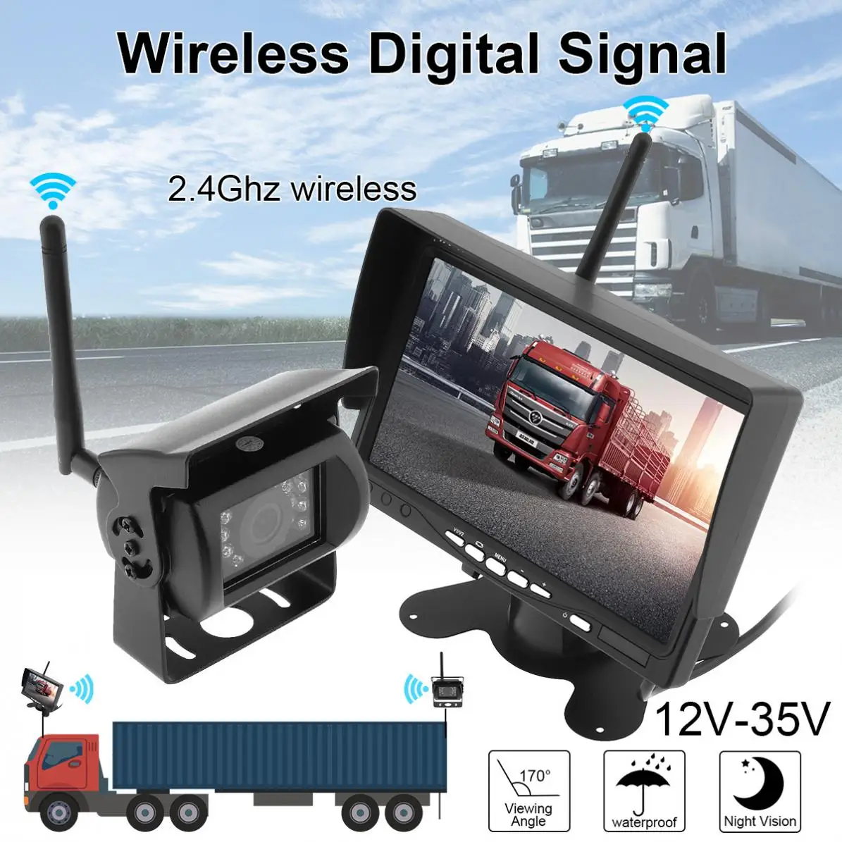 Us 52 33 39 Off 7 Inch Wireless Backup Camera Rear View Camera System Hd Tft Lcd Waterproof Night Vision Vehicle Rear View Monitor For Truck Rv In