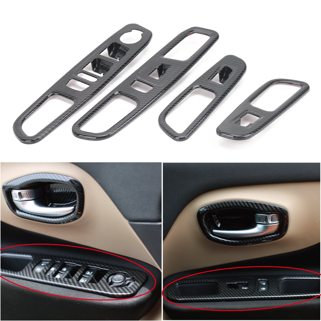 1 Set Window Lift Switch Panel Cover Trims For Jeep Renegade 2015 2017 Carbon Black 4 Pcs