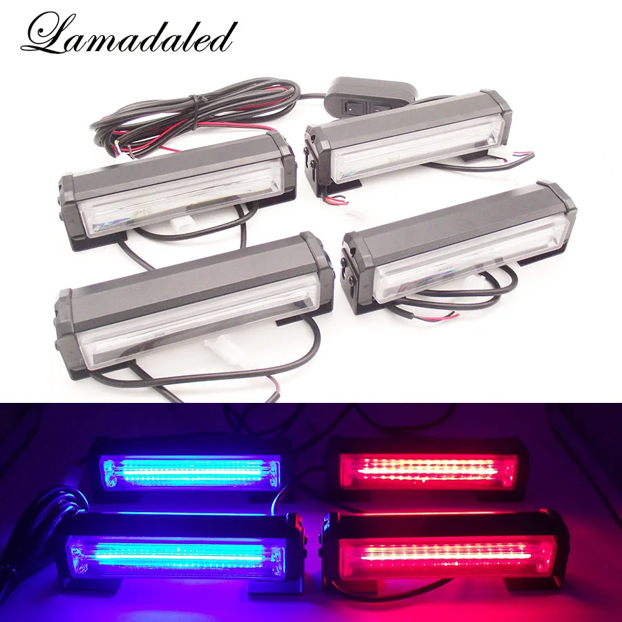 Lamadaled 12v Red Blue White Amber 2x4 Led Police Strobe Lights Vehicle Flashing Shovel Light Car Dash Board Led Emergency Lamp