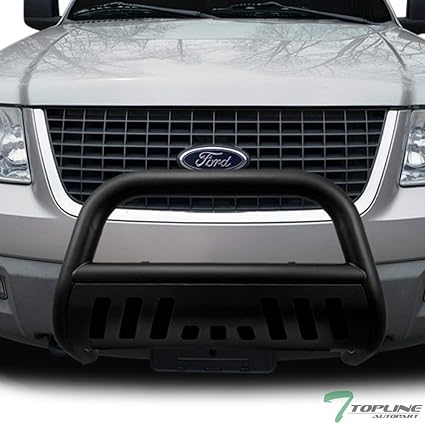 Topline Autopart Matte Black Bull Bar Brush Push Front Bumper Grill Grille Guard With Skid Plate For 04 18 Ford F150 03 17 Expedition 03 14