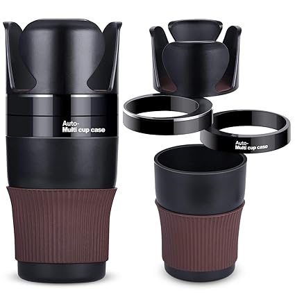 Autophilia 5 In 1 Multi Functional Car Cup Holder Organizer Adjustable Car Cup Holder Drink Phone Holder Storage Cup Black