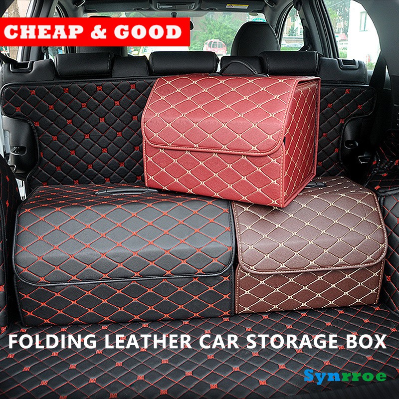 Folding Pu Leather Car Storage Box Storage Car Boot Organizer