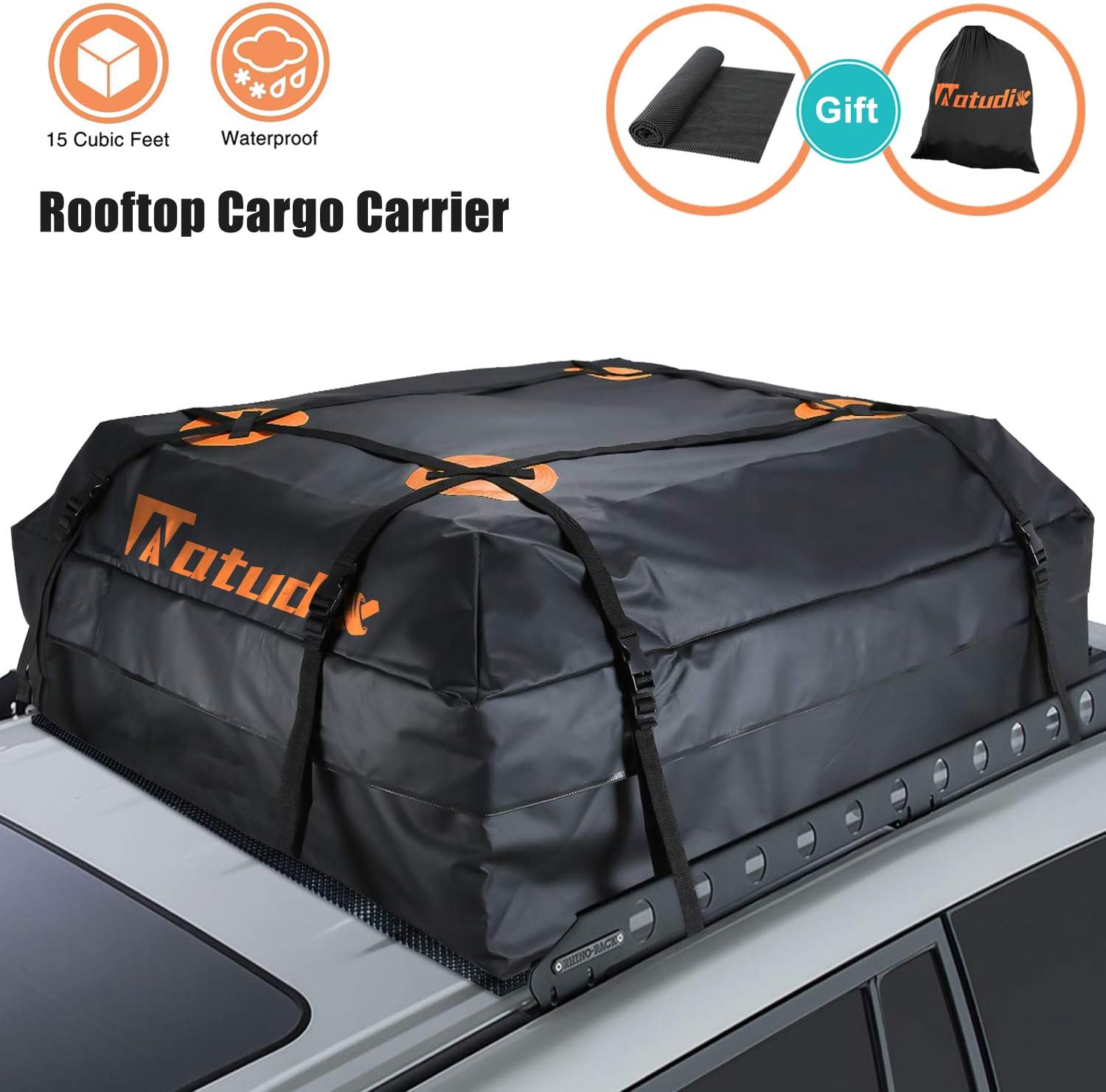 Natudix Car Rooftop Cargo Carrier Bag 15 Cubic Feet Waterproof Sturdy Zippers Car Roof Bag With Protective Mat And Carry Bag Fits All Cars With