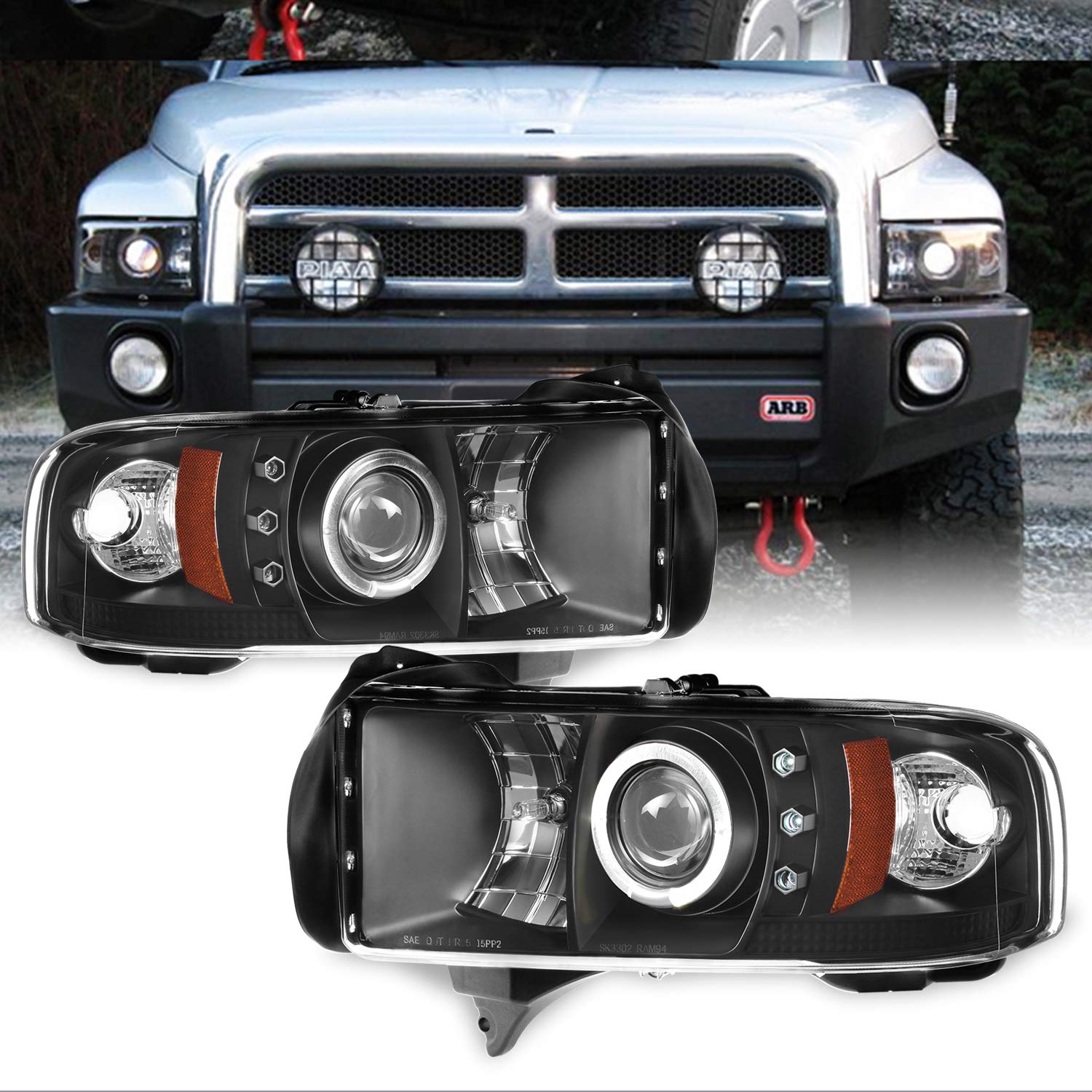 94 02 Dodge Ram Halo Projector Headlights Black