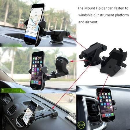 Black 360 Car Holder Windshield Mount Bracket For Mobile
